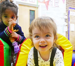 Throughout the day we provide a positive and enabling environment for your child. The staff plan activities and experiences based around your child’s interests and development. A variety of creative arts and crafts are carried out, adult led messy play, and the children have the free play of the ‘home corner’ and dressing up clothes. We also like to promote each child’s physical skills by focussing on purposeful physical play. By providing activities such as soft play, climbing frames, tunnels and tents we are allowing each child to develop their core strength which is essential for their overall development. These will help with skills like rolling, crawling, walking, hopping, balancing, jumping and running.